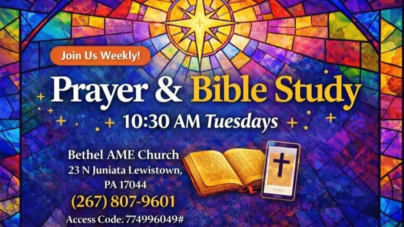 Bible study & prayer Tuesdays 10:30am